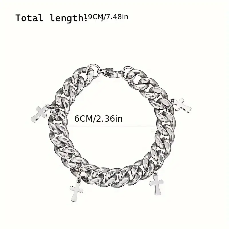 The Graceful Cross Charm Curb Chain Christian Bracelet is crafted for believers who desire to carry their faith in style. Featuring a polished silver curb chain adorned with multiple delicate cross charms, this bracelet is a modern and elegant statement of devotion. The durable and adjustable design ensures a comfortable fit for both men and women, making it perfect for daily wear or special occasions. A meaningful accessory and a perfect gift that beautifully blends fashion with faith.